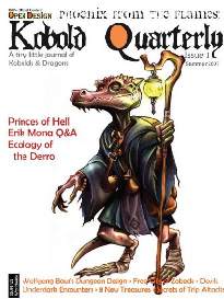 Als 2007 die beiden altehrwürdigen Printmagazine des Rollenspiels, Das Dungeon Magazine sowie das Dragon Magazine, eingestellt wurden, fand sich mit Wolfgang Baur glücklicherweise alsbald jemand, der die Tradition fortzuführen gedachte. Baur hatte inzwischen das Label Open Design gegründet und neben den dort entstehenden Patronageprojekten wurde der Kobold Quarterly, wie das Magazin genannt wurde, zu einem inzwischen mehrfach Ennie-gekrönten (bzw. versilberten) Publikationsorgan, dass sich mit allen Facetten des Spiels beschäftigt, ohne sich dabei in irgendeine Ecke stellen zu lassen.